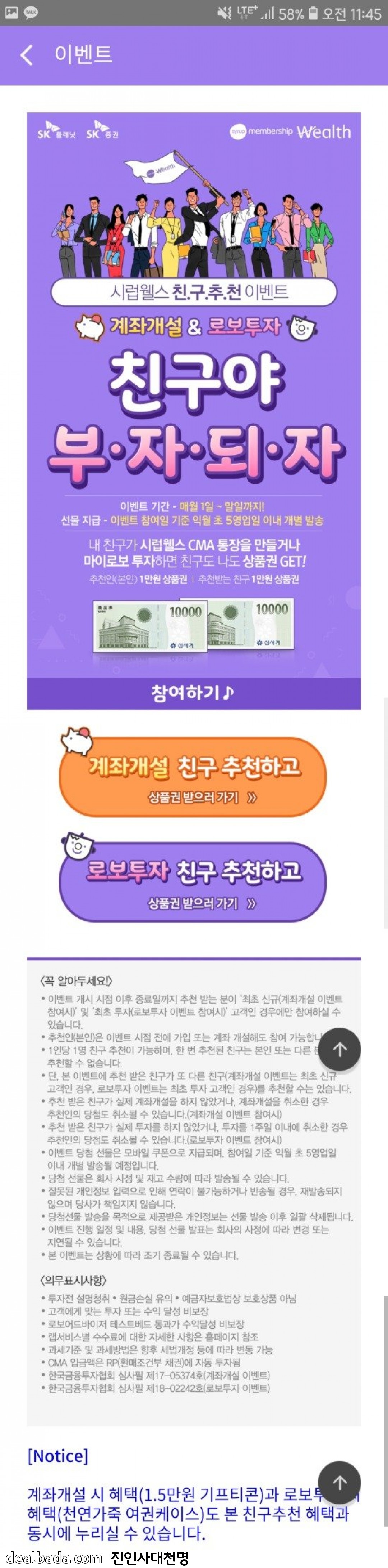 추천인 링크 없이 다들 추천하고 가입하는 것 같습니다. 저도 추천링크없이 가입 했구요 |
