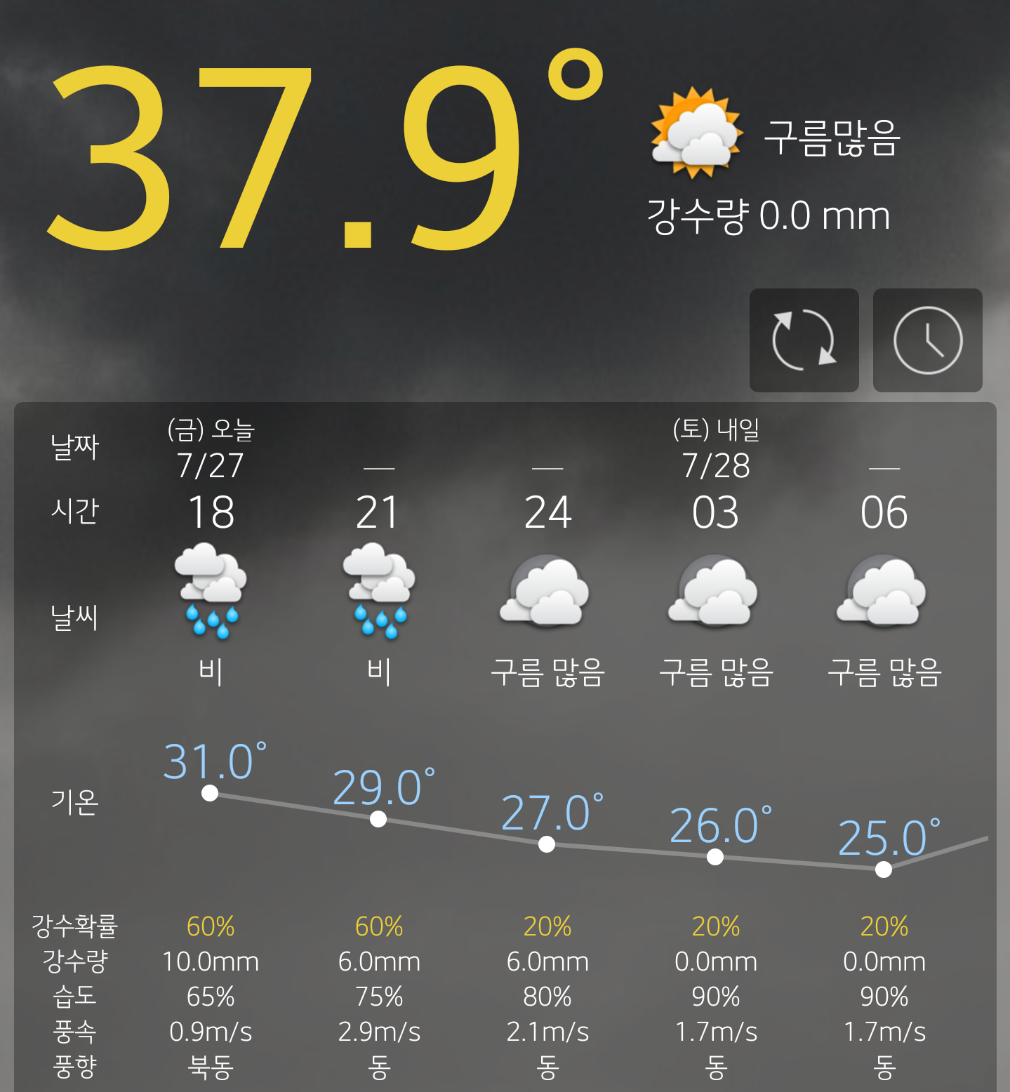 제발 고기압 밀어내길 바라는 수 밖에 없어요. 못밀어내고 비만 뿌리면 .....낮기온 34도에 습도 80%대 넘어가면 진짜 헬 열립니다.. |