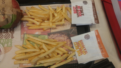 요즘은 레귤러가 양이 줄어들어서 그런지 라지랑 양차이가 많이 났었는데 이 지점은 비슷하네요...제가 자주 가는 버거킹 지점보다 오히려 레귤러 양은 더 많아 보여요... | ||