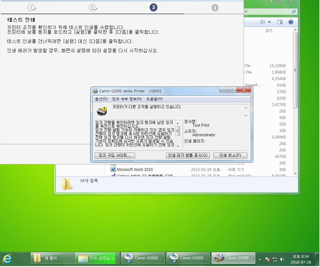 저 그거 동일한 와이파이만 추가된 3900 쓰고 있는데... 잉크 넣고 한참 기다려야 합니다.