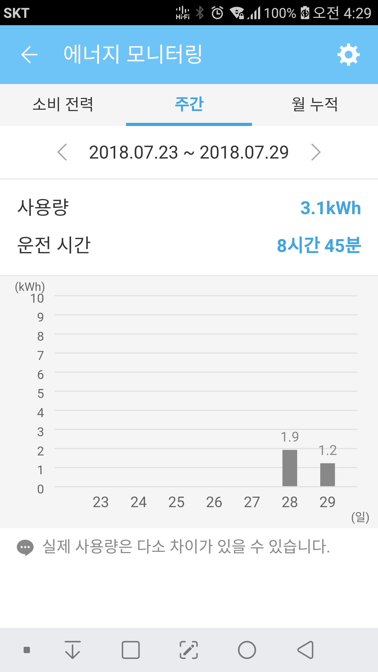 어플은 중간에 받아서 약 9시간이용 3Kw썼어요.