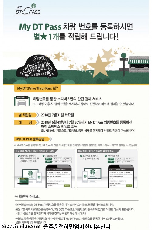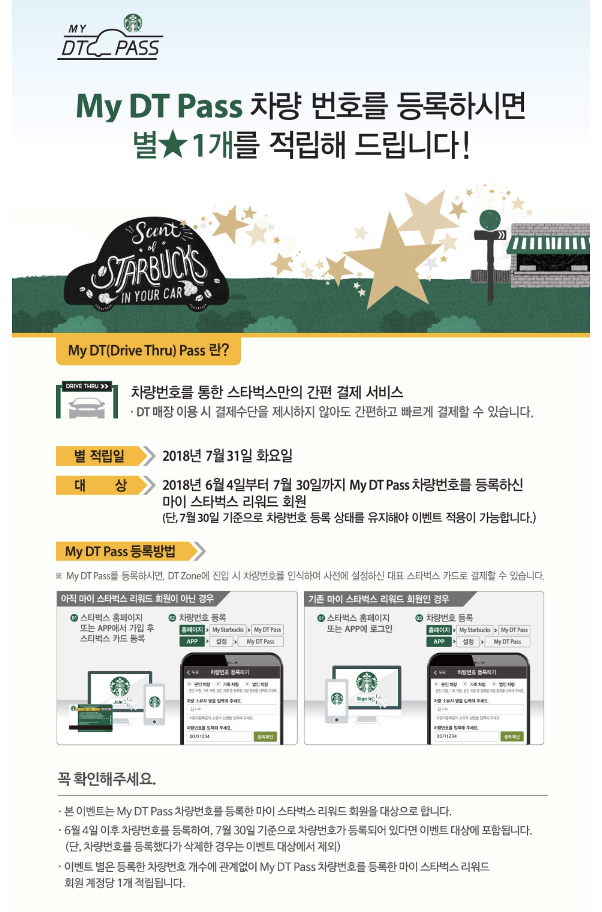 스벅 DT 패스 차량번호 등록하고 별 적립 받으세요