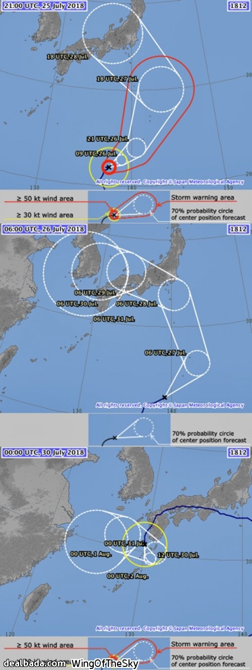 폭염라인에 막혀서 일본 내륙을 따라 좌측으로 계속적인 이동을 하는거 같습니다.