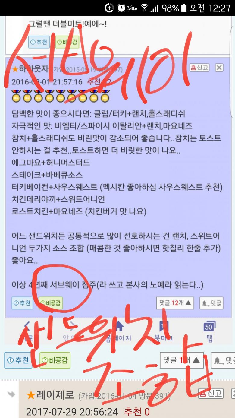 blt류가 제일 무난하고 소스는 스위트 어니언이 달콤하고 맛있어요. 빵은 플랫이 쫀득한맛, 허니오트나 파마산 오레가노가 고소하고 맛있어요. (완전 주관적 ㅋㅋ) |