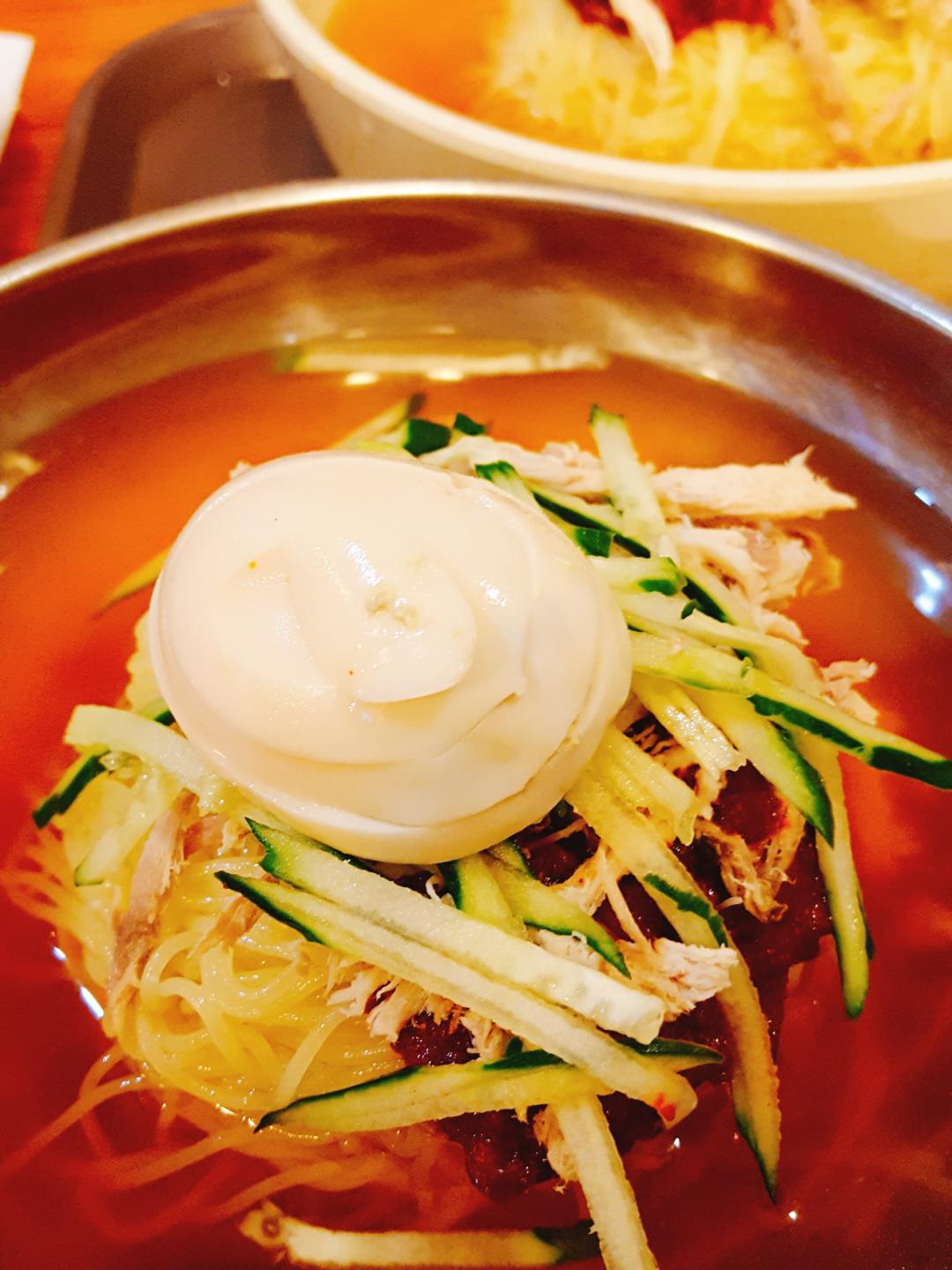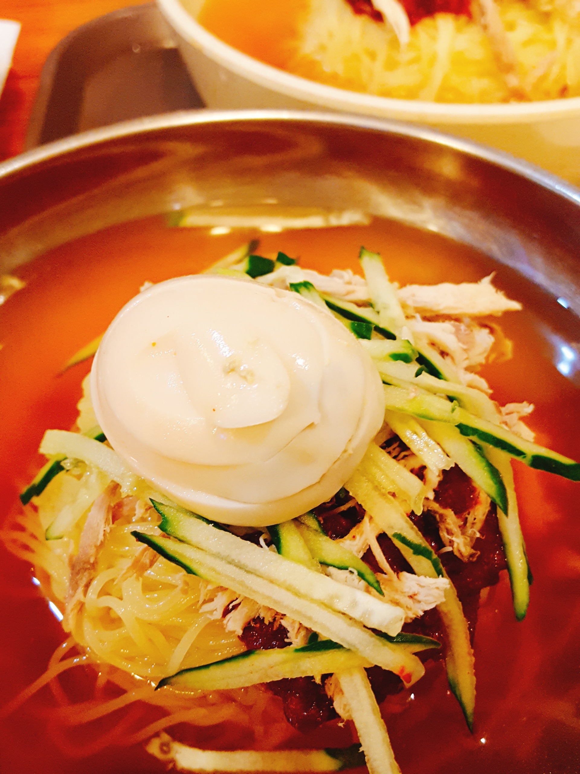 크으 밀면 맛잇겟네요 ㅜㅜㅜ 넘 더워요.. 저기는 닭고기를 찢어서 얹어주네요
