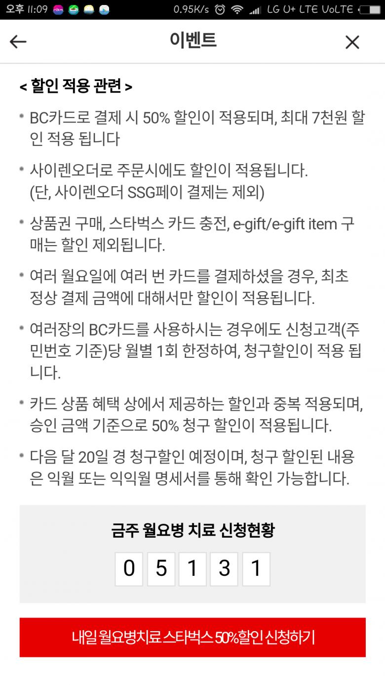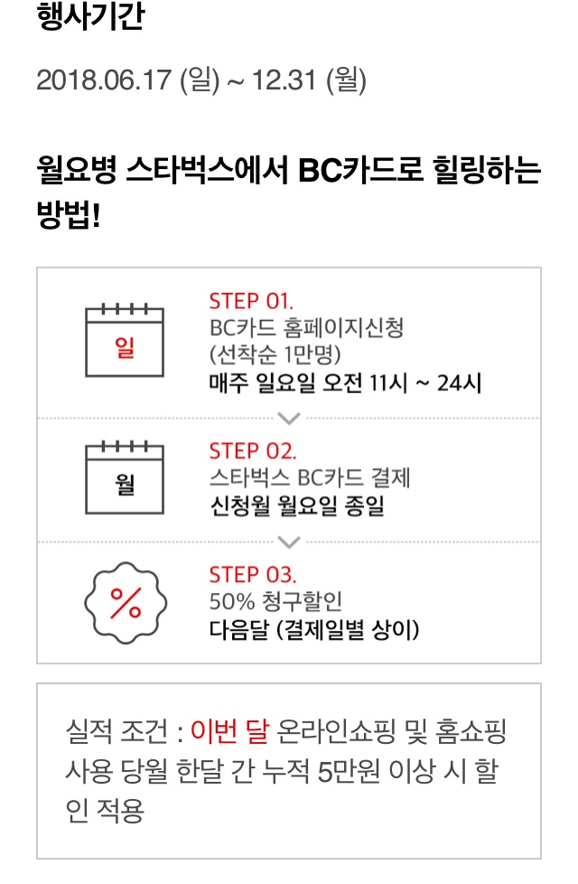 실적 조건 확인하시고 가능한 분은 신청하셔서 내일 반값에 스벅 즐기세요