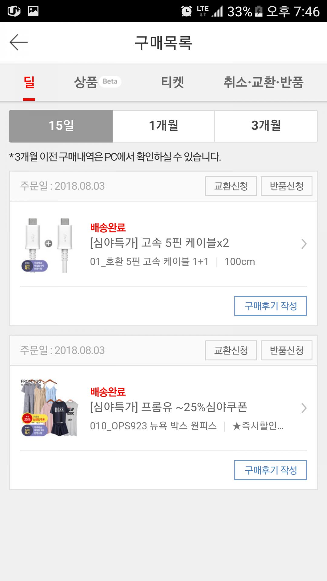 고속케이블 2개 1900원으로 배송비 없이 구매해서