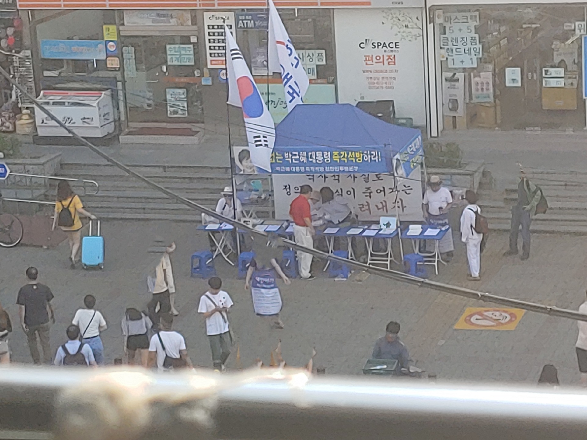 넵. 거기 503 탄핵하고나서 죄없는 503 석방해야 한다는 플랫카드. 인간박정희연구 어쩌고 하는 플랫카드 걸리고 그랬어요. |