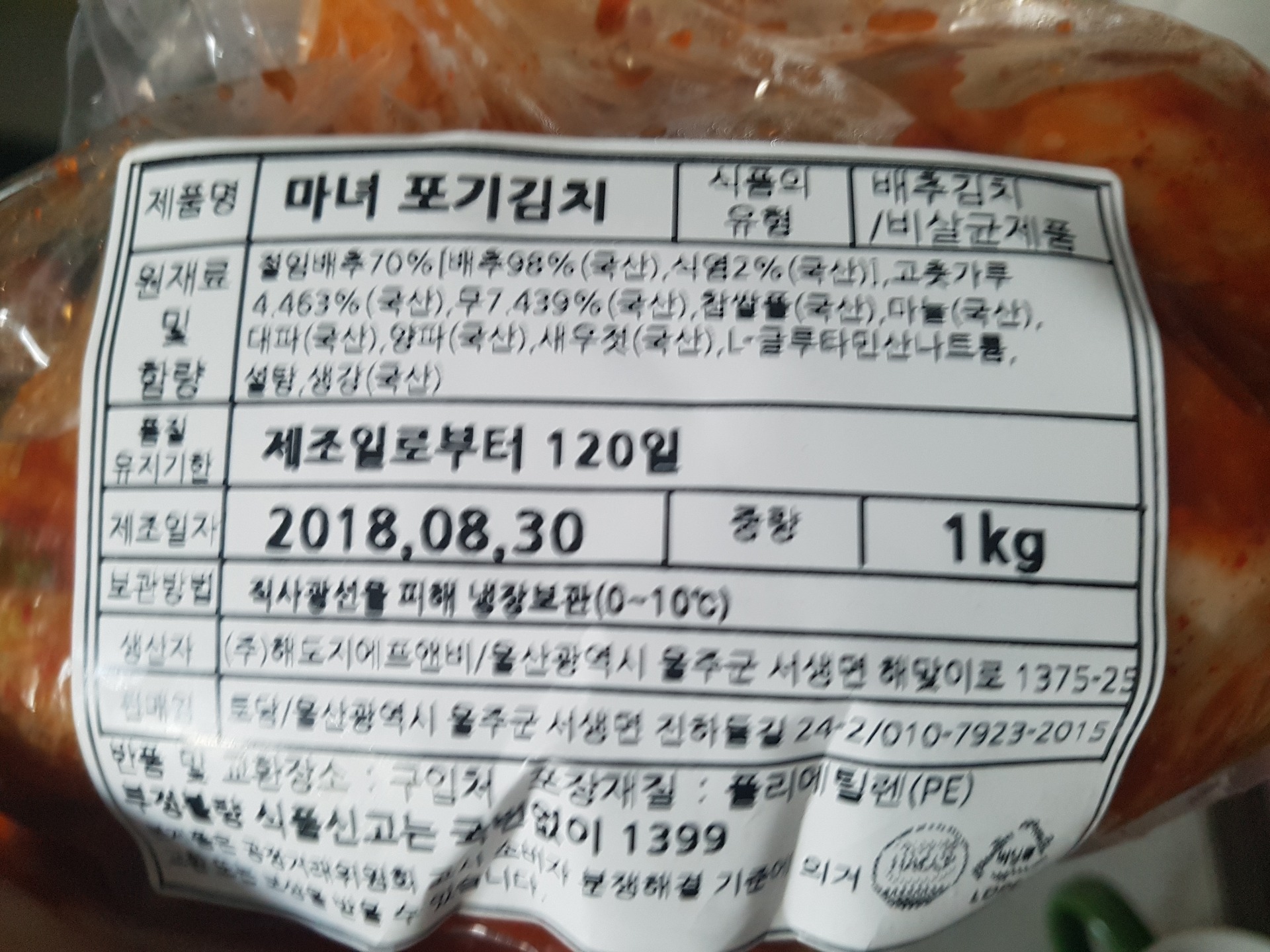 제대로 된 배추는 그냥 먹어줄만... 나머지 하나는 msg의 단맛(먹는순간 헉,,니글..입술이 부풀어오를듯, 또 나머지 하나는 배추의 쓴맛과 짠맛... 같은 날짜 생산 공장이 같은데 어찌이리 3개의 맛이 다른지... |