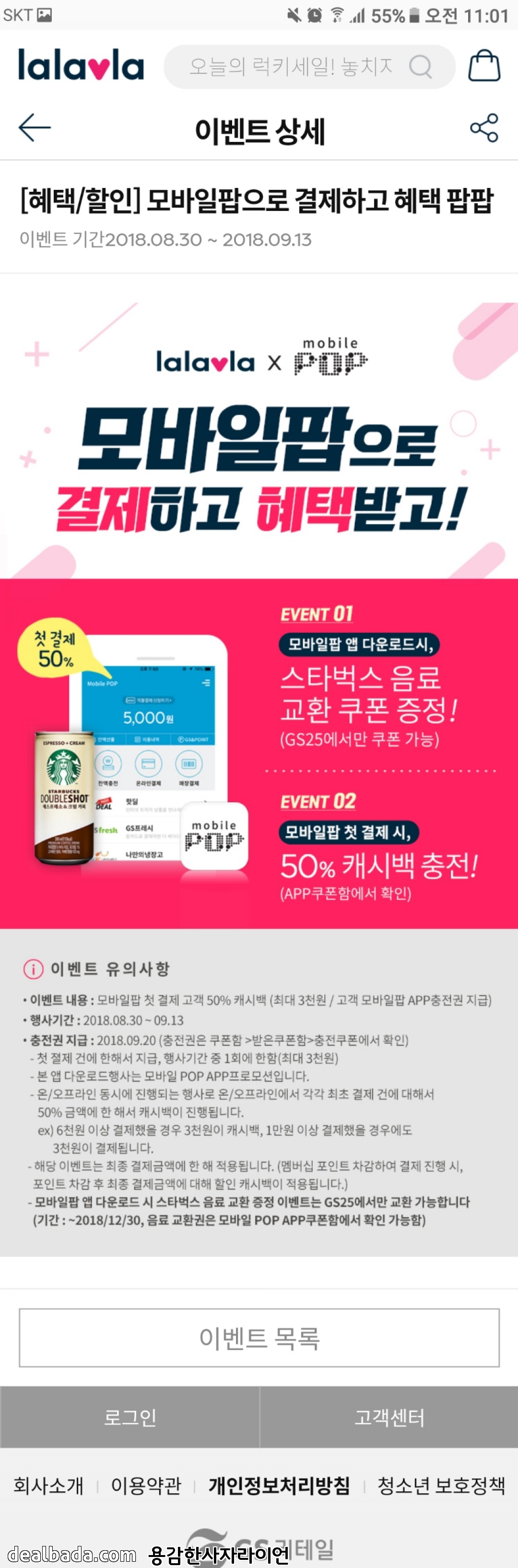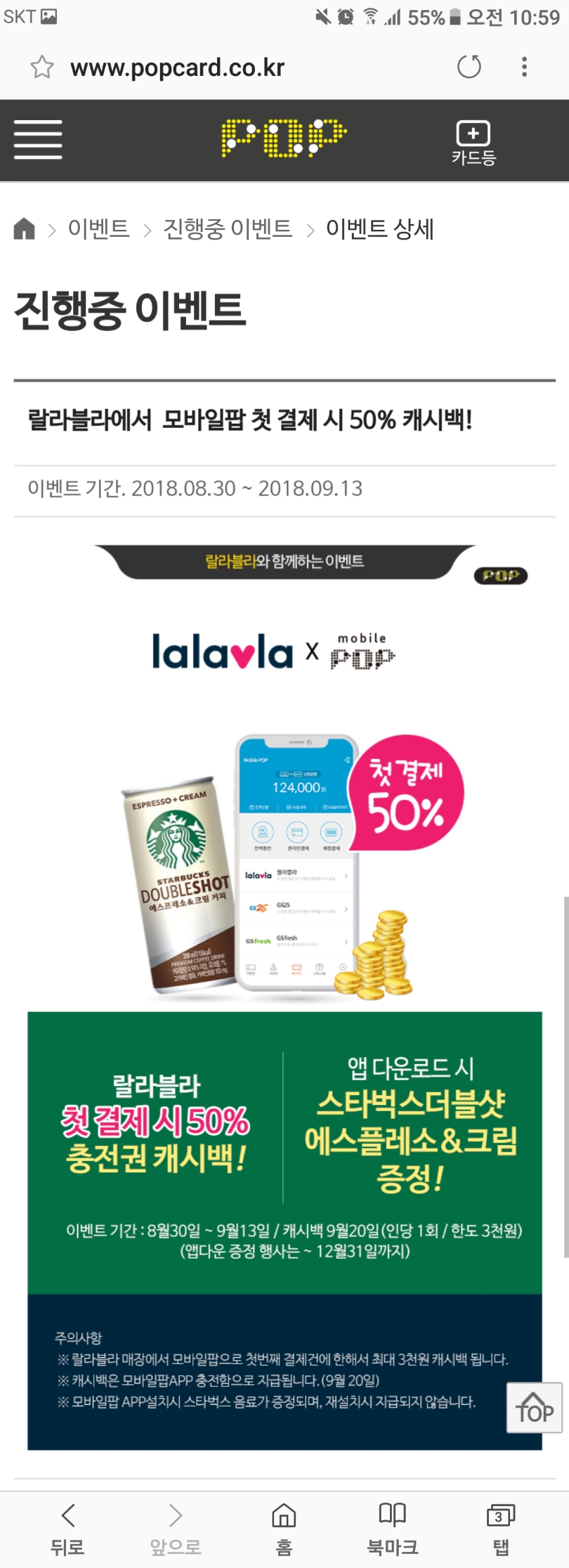 랄라블라에서 모바일팝 첫결제시 50% (최대3000원) 캐시백 이벤트하네요 > 자유게시판