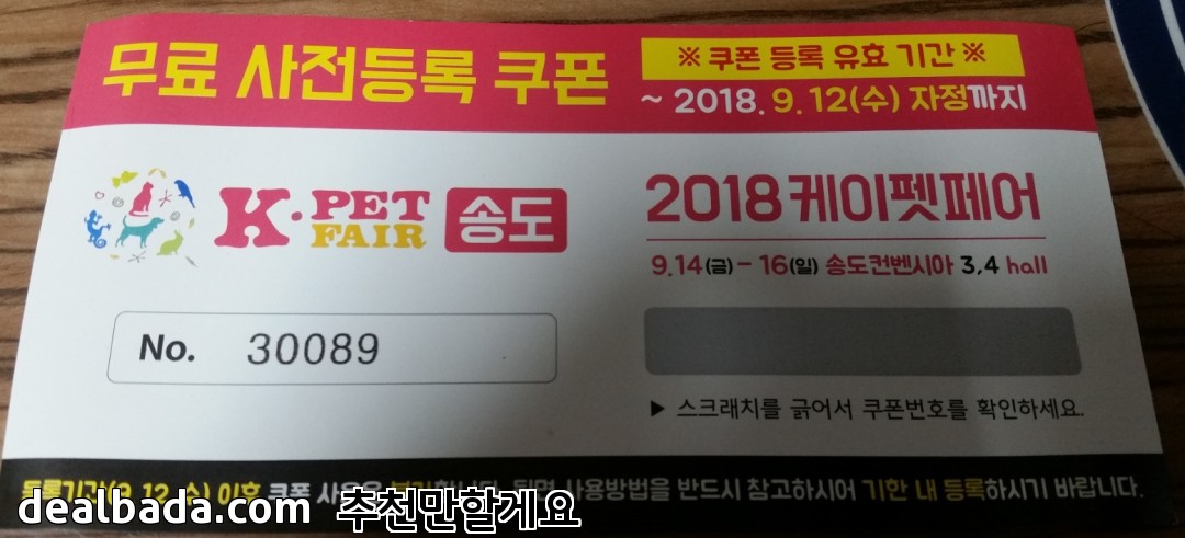 사료랑 간식사면서 받았는데요. 거리가 멀어 가지못할것 같아서 나눔합니다. 현장매표입장료는 10,000원. 사전등록입장료는 5,000원인데 위 쿠폰 사용하면 0원이 되는것 같아요. 꼭 가보실분만 댓글 남겨주시구요. 가능하시면 다녀오시고 간단한 인증이라도 남겨주시면 좋을것 같아요.