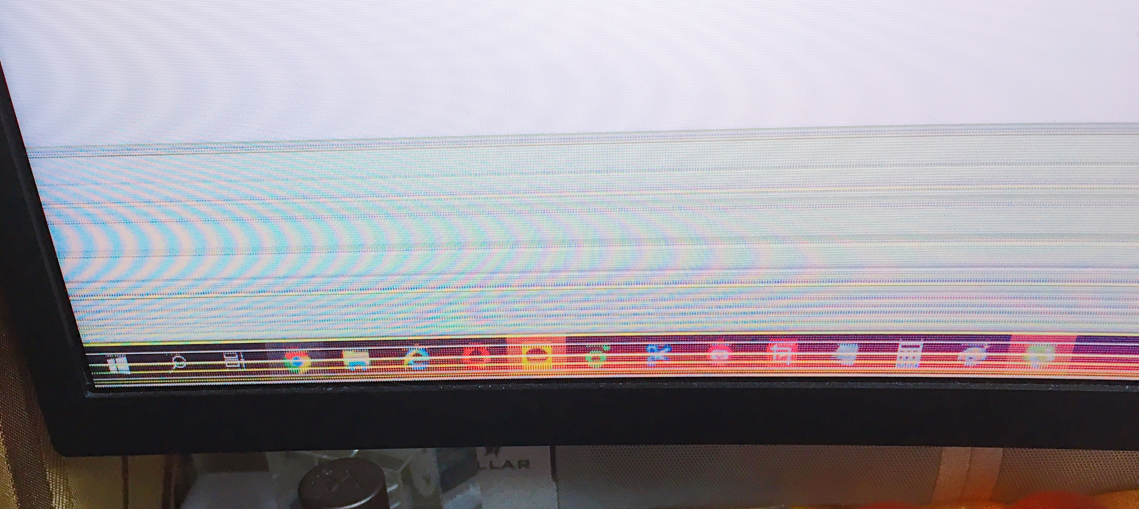 그 뒤로 요즘 거의 매일 컴퓨터 킬 때마다 약간씩(0.5센치폭 정도?) 가로줄이 하단에 나오고