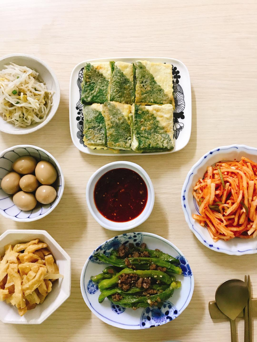 오전에 만든 찬 들로만 채워 봤어요.
