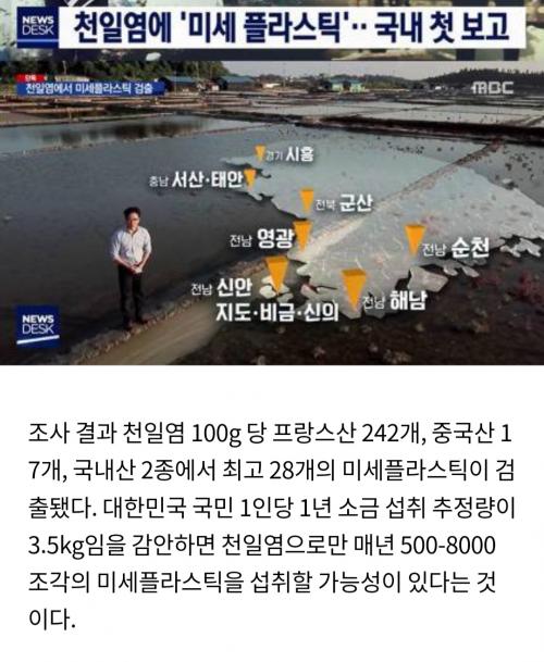 기사에 따르면 중국산 천일염에서 제일 적게 미세플라스틱이 나온건 함정.....