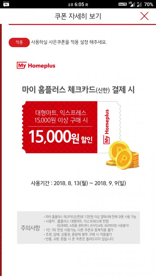 마이홈플러스 멤버쉽 가입분은 쿠폰 확인하고