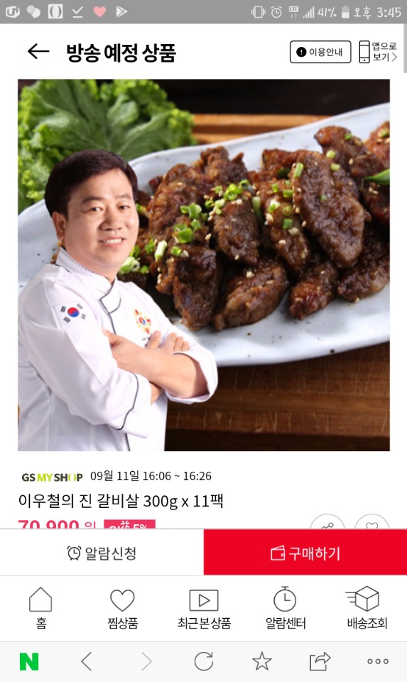 홈쇼핑에서 이우철의 진 갈비살 300g 11팩 샀어요~