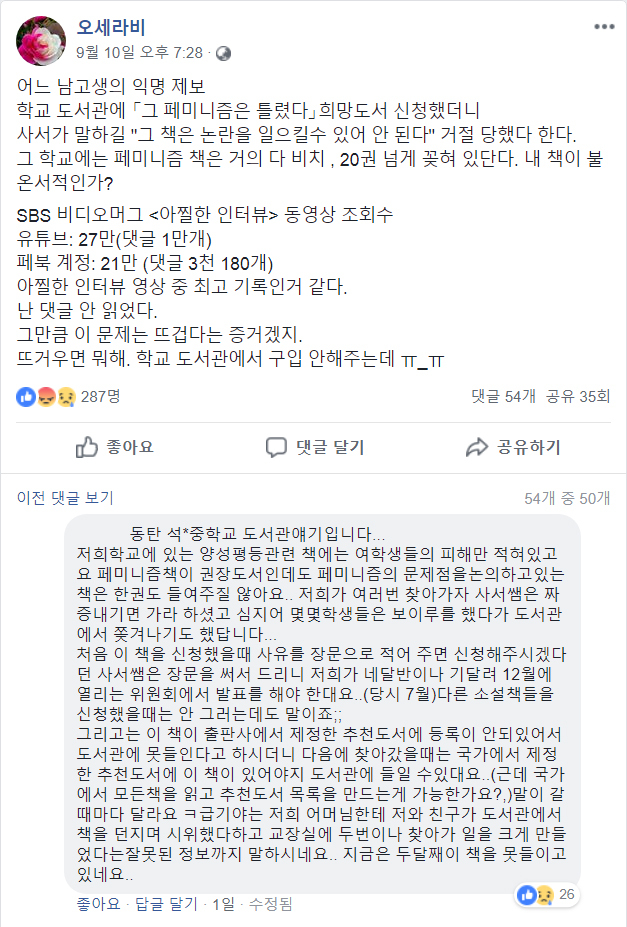 학교에서 불온서적이된 페미니즘 비판도서