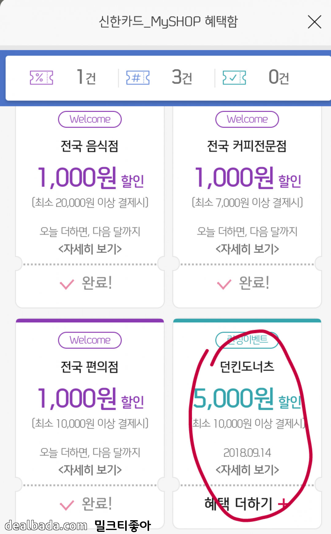 오늘 신한카드 던킨 할인입니다 > 자유게시판