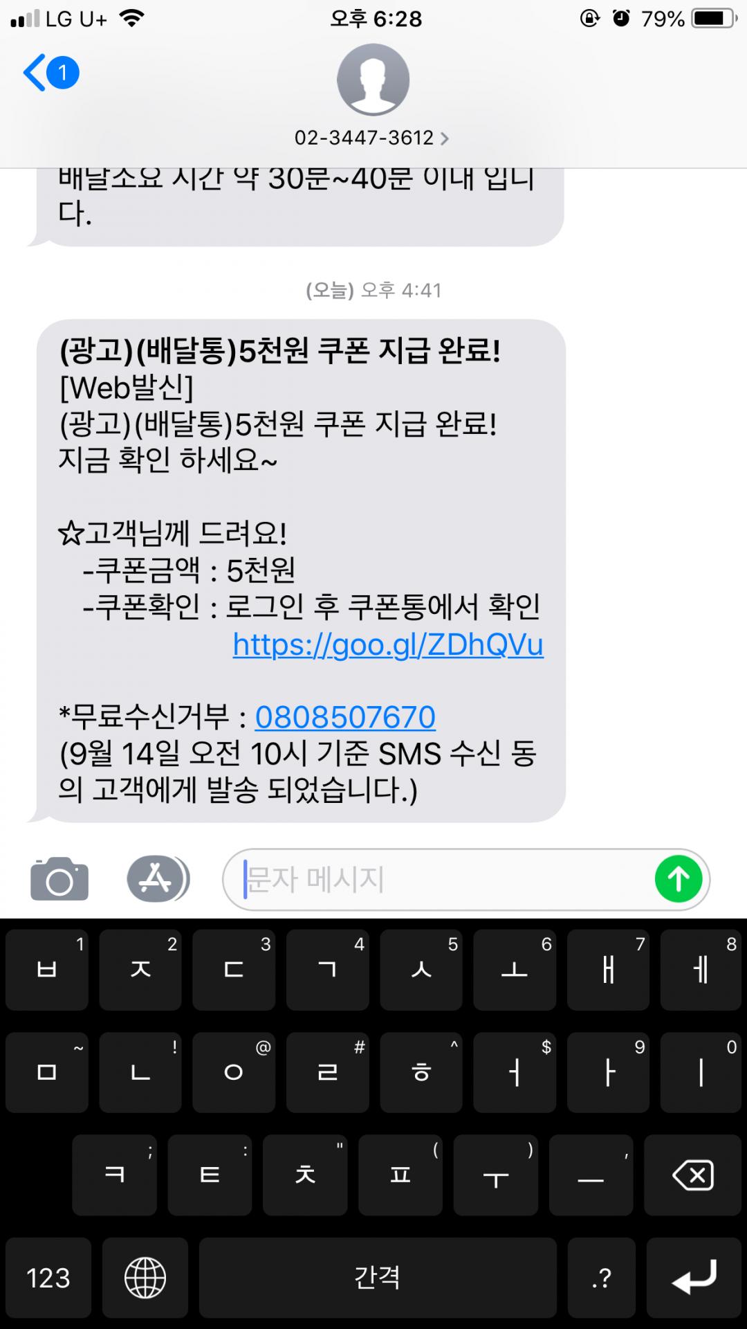 배달통 5천원 쿠폰 문자왔네요.