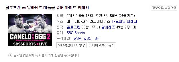 그래서 시합 체급 상으로도 골로프킨이 더 많은 감량을 해야해서 불리한 편인데 약바레즈가 약을 한 것임.