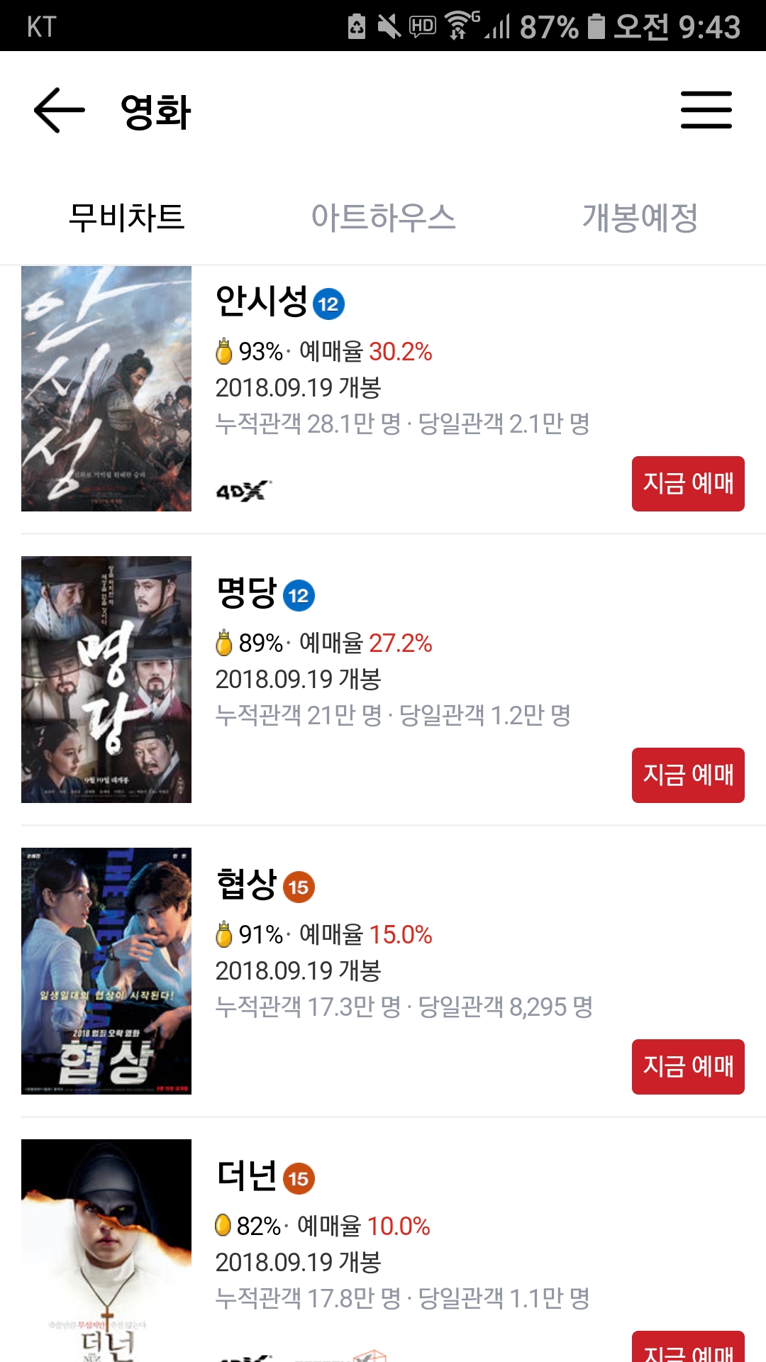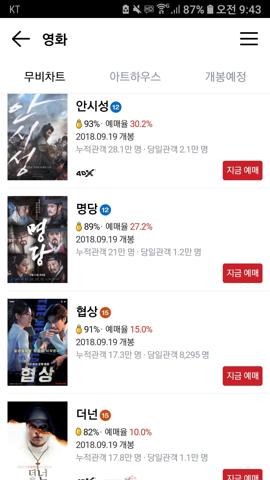 실시간 영화 예매순위