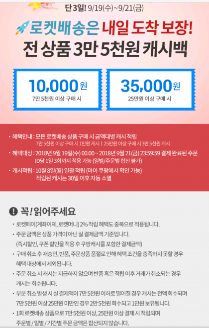 로켓배송 캐쉬백은 토요일 더시앵콜허네요