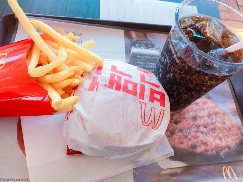 아직 햄버거는 안먹었고 감튀만 먹고 있는데 짭쪼롬하네용