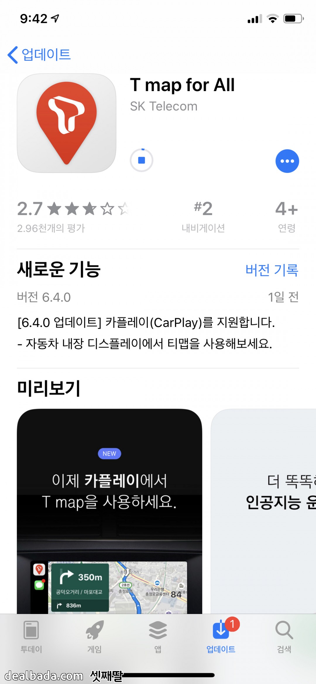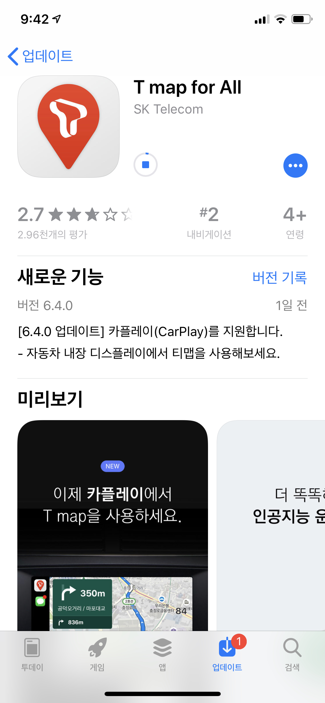 ios, 카플레이 적용된 티맵 올라왔군요ㅋ