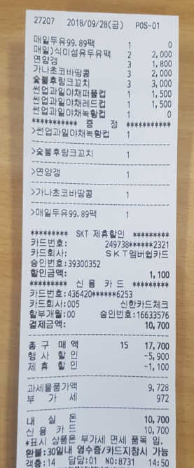 아침대용식과 오후에 출출할때 먹을 간식위주로 2+1을 골랐습니다.