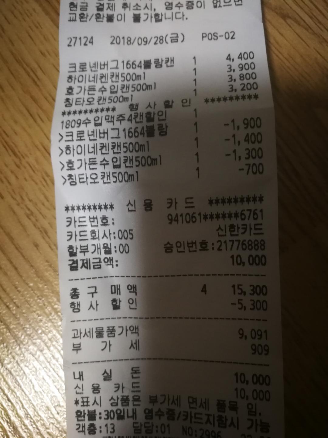 영수증에 5천원 할인이 없어서 불안합니다...