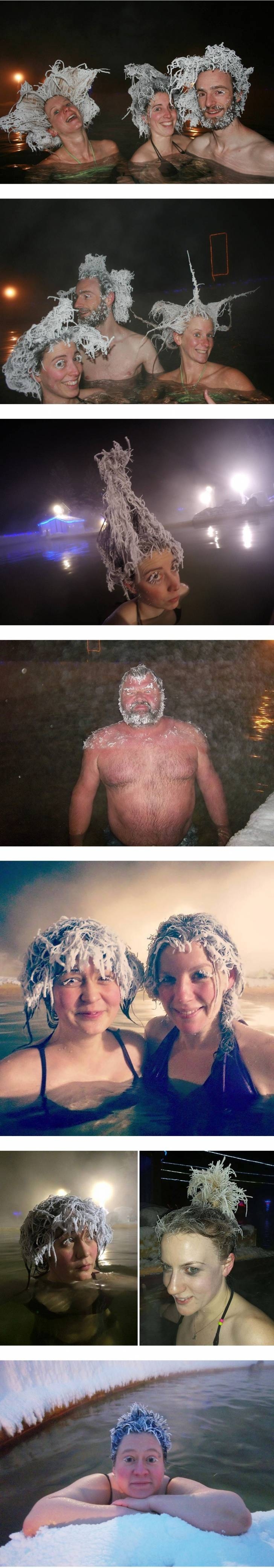 네 머리카락에 물이 언거죠