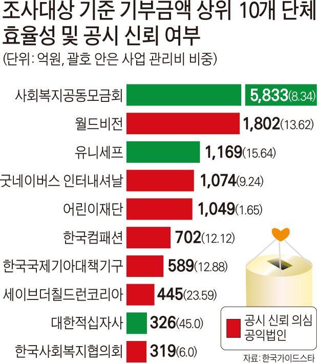 한국의 자선단체들 기부단체 투명성 D등급