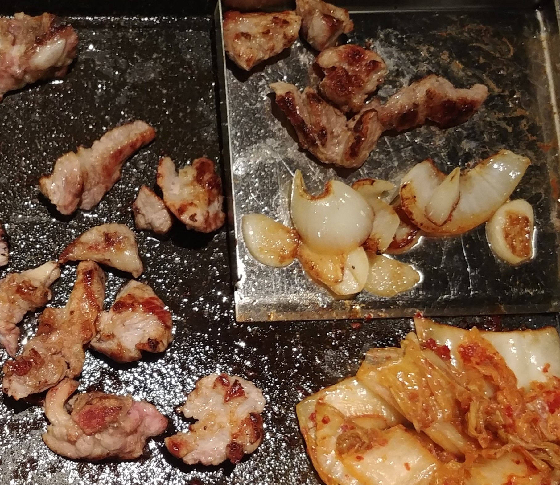 넘 배고픈 시간에 가는 바람에 구워주시는 족족 집어먹다 아차 하며 폰을 꺼냈을 땐 이미 불판은 초토화 되고 갈비 몇 점만 남아 있었네요. 그래도 사진은 필요했기에 이리 부실한 사진을 올리게 된 점 부디 이해 부탁드려요...ㅠㅠ