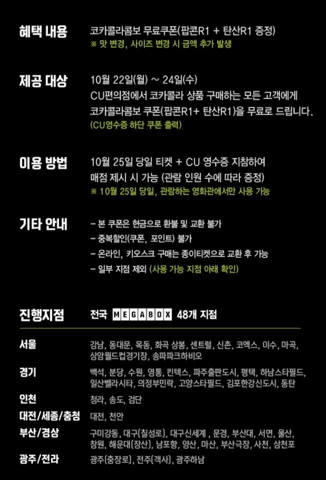 이번주 씨유와 메가박스 공동행사 있습니다