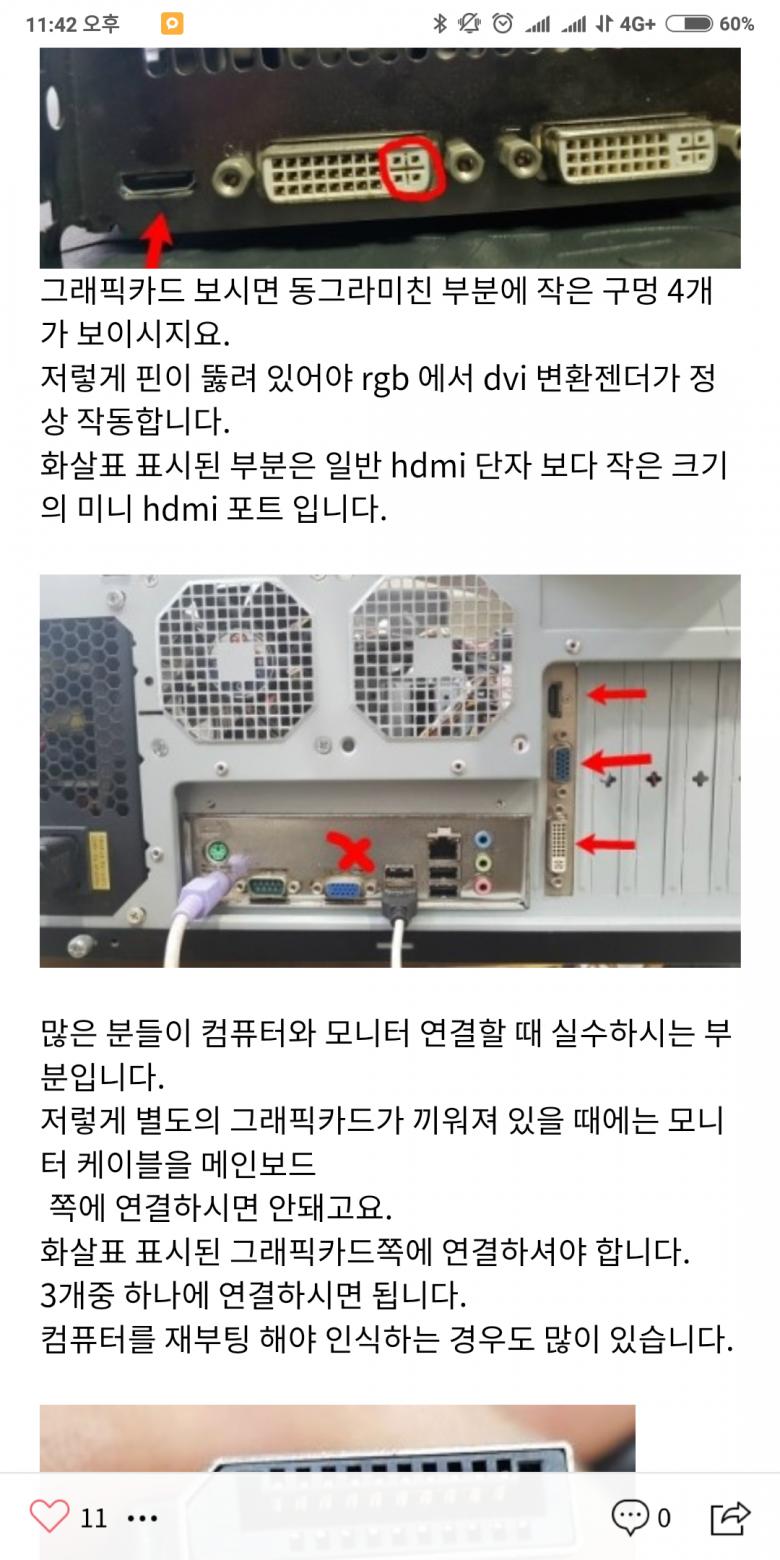 Dvi로 pc모니터 연결할때는 그래픽카드 뒷부분말고 본체 맨아래에 dvi꼽는곳이 한군데 또있어서 거기로 사용했는데 이거 rgb케이블 사용못하는건가요?