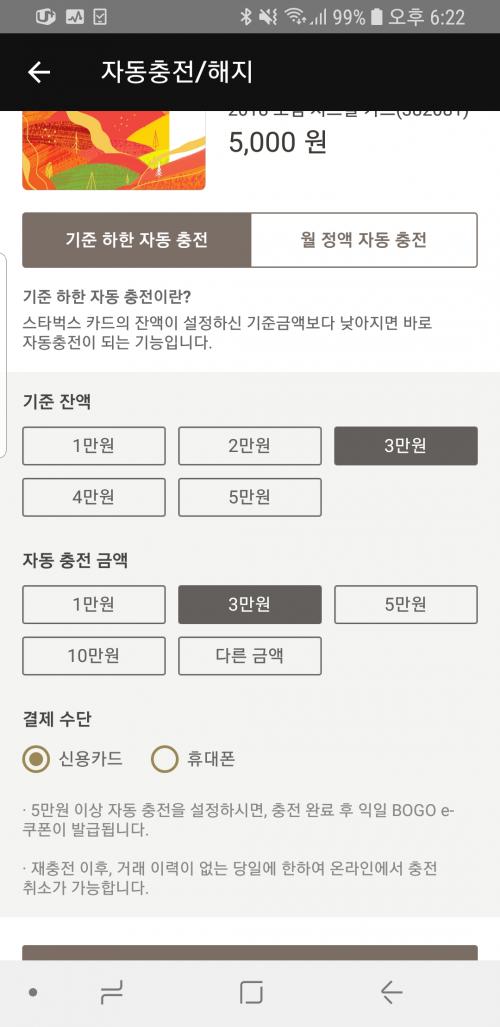 (bc카드앱)스타벅스 3만원이상 자동충전시 5천원 할인 질문 좀 할게요 > 자유게시판