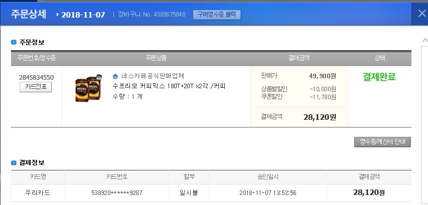 저는 썸타는 우리카드를 써서 28120원에서 10% 더 할인받았습니다.