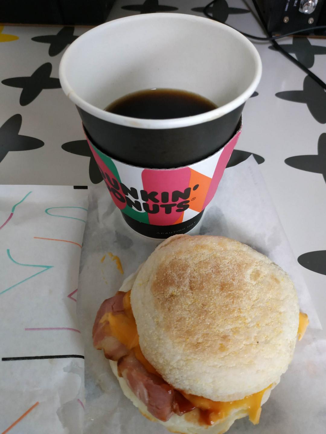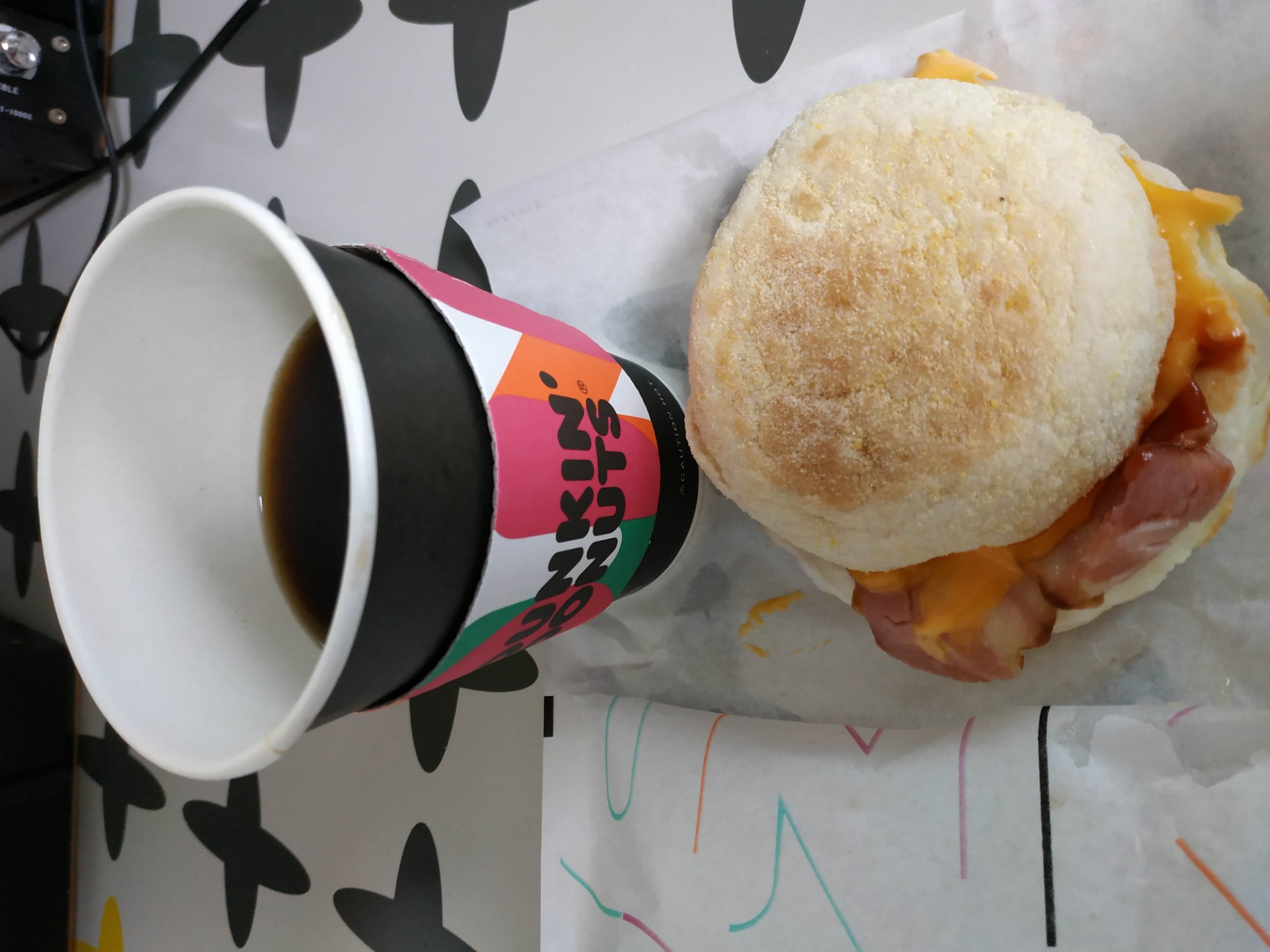 아침 런닝하고 던킨모닝세트 포장해왔어요.