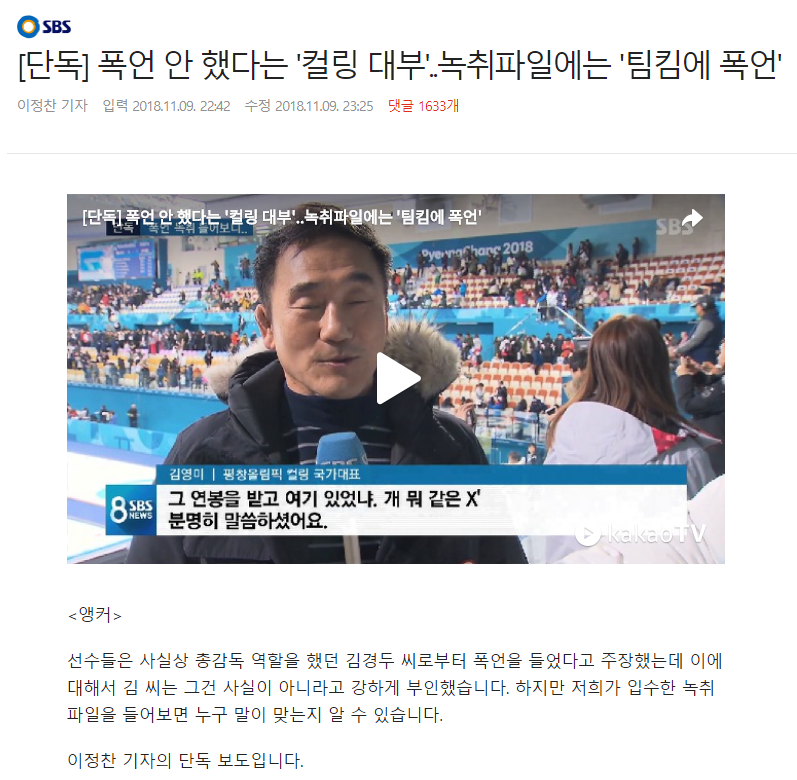 그리고 컬링 선수들이 은메달 딴게 자기 덕이라고 생각하나보군요. 웃겼네요.