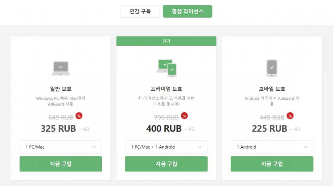 5. 평생 라이선스 탭에서 원하는 만큼 결제 (루블 맞는지와 50% 할인이 적용 되었는지 등 확인 잘하세요)
