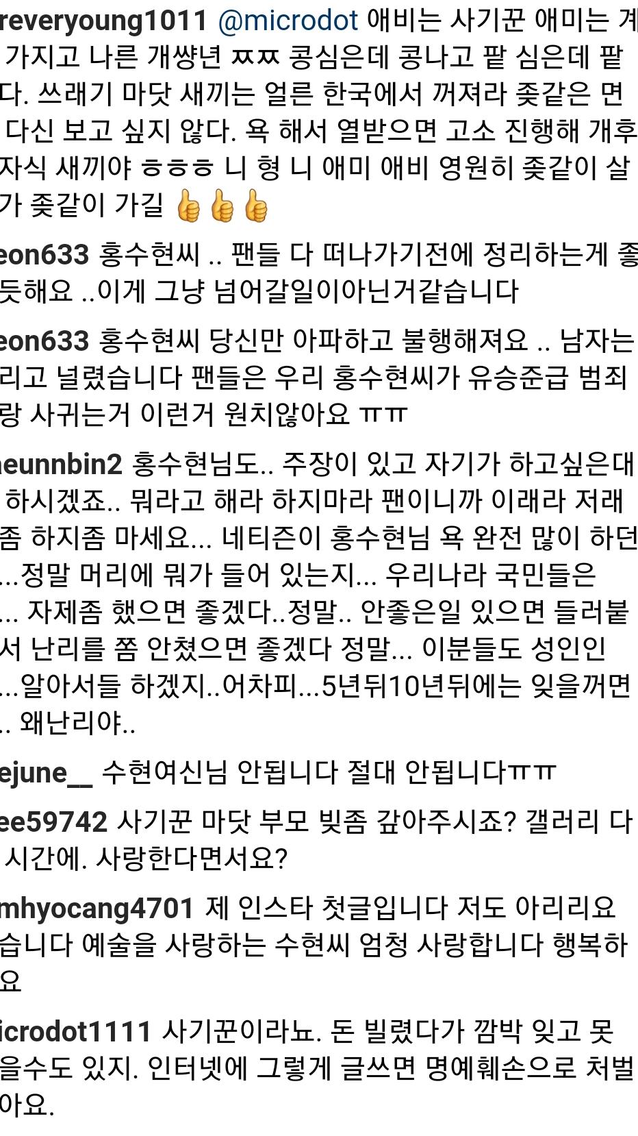 마닷을 옹호하지는 않지만 홍수현에게는 저 댓글들 고소나 당하기를 빕니다.