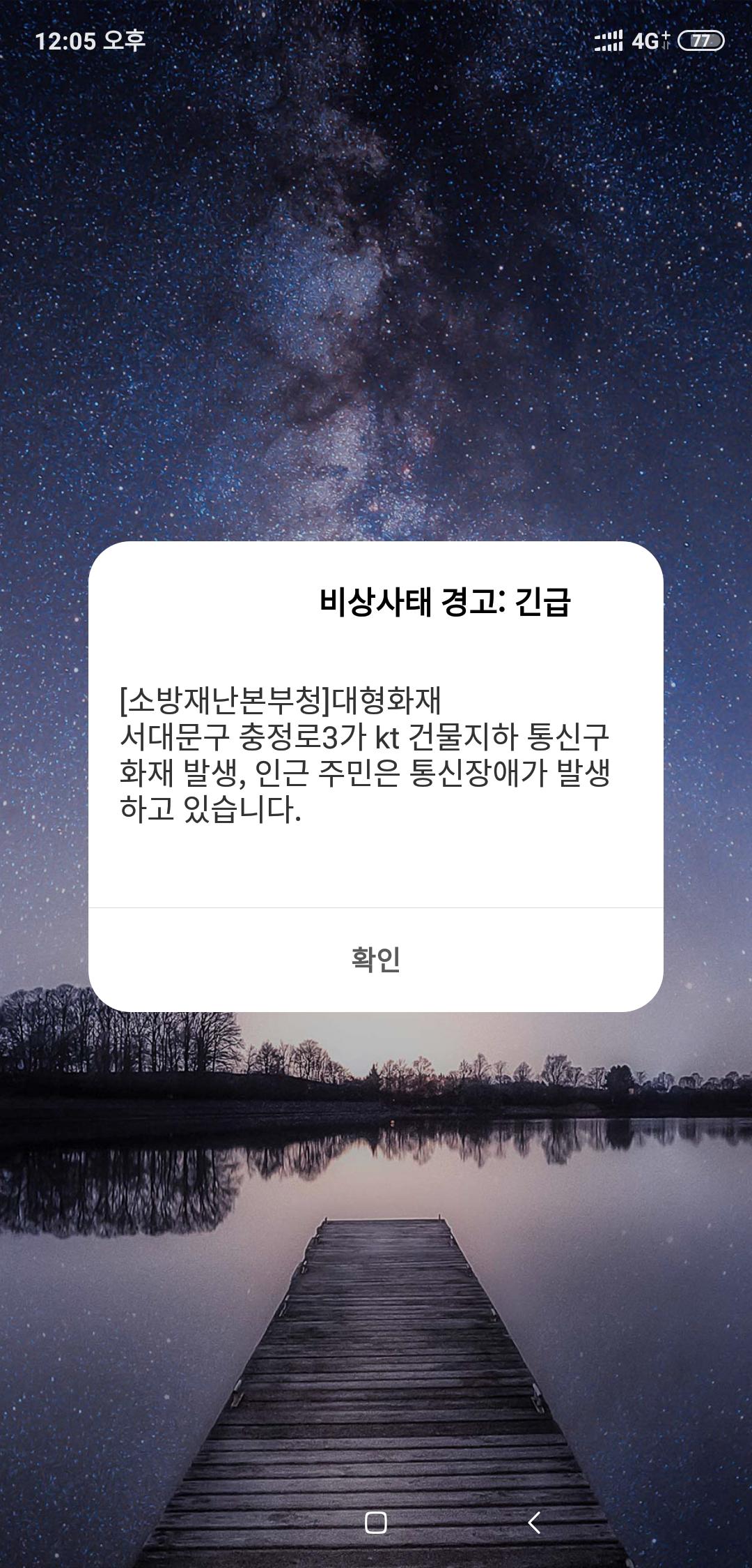 kt 스마트폰이 인터넷 전화 다 안되서 재난문자도 안왔어요;;;