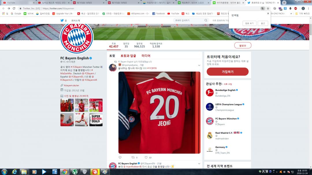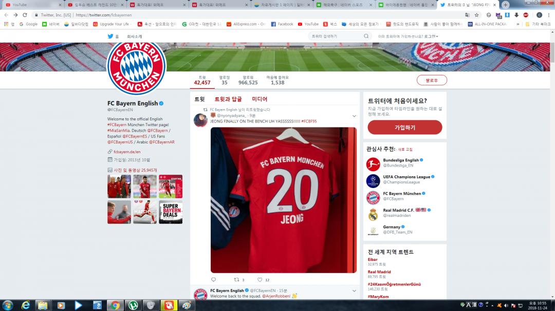 정우영 벤치라는 소식듣고 한번 바이에른 트위터 들어가봤는데