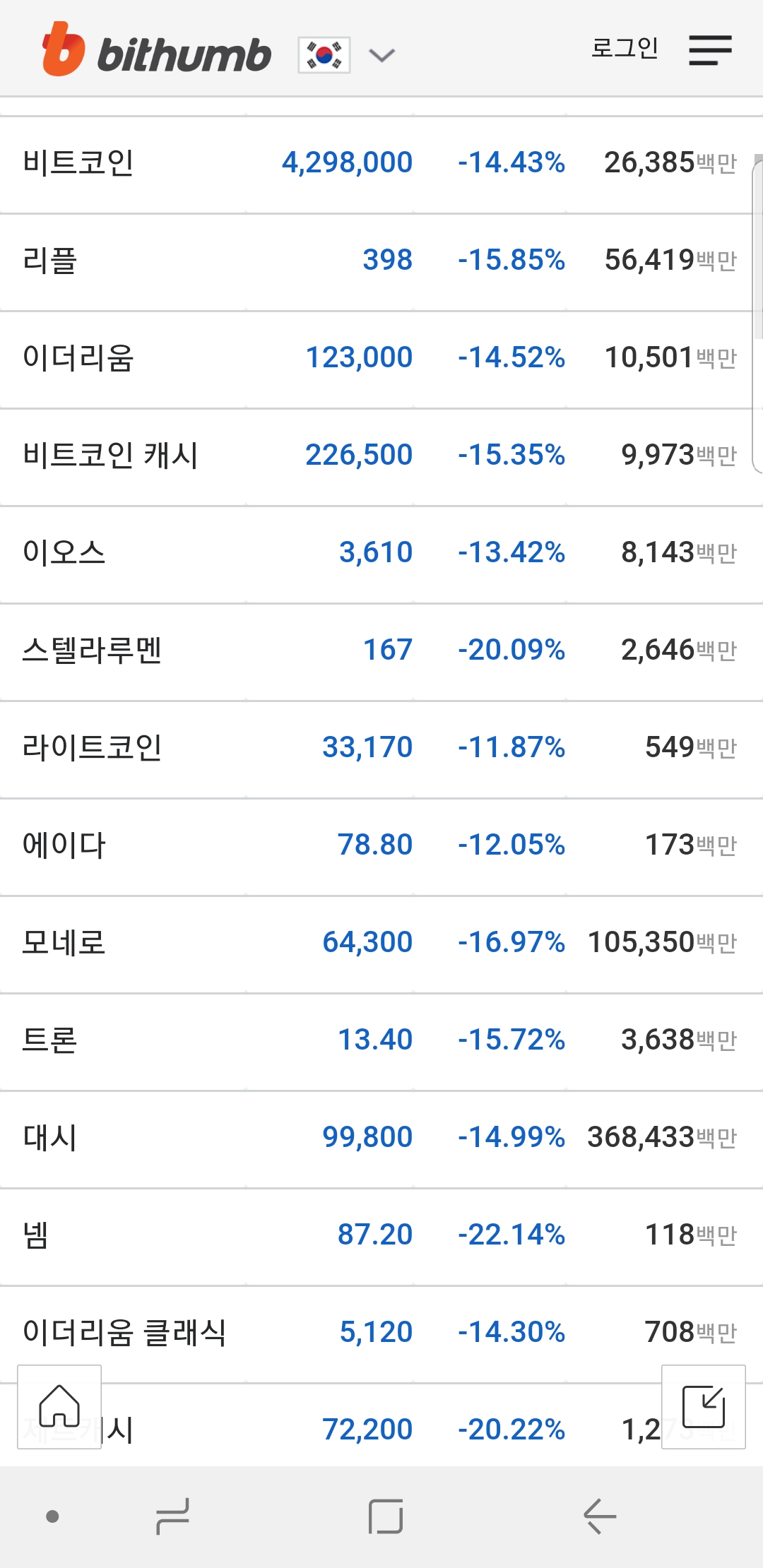 비코나 리플은 아직 예전에 붐업전보단 비싸네요. 이더는 좀 많이 내린거같고.. |