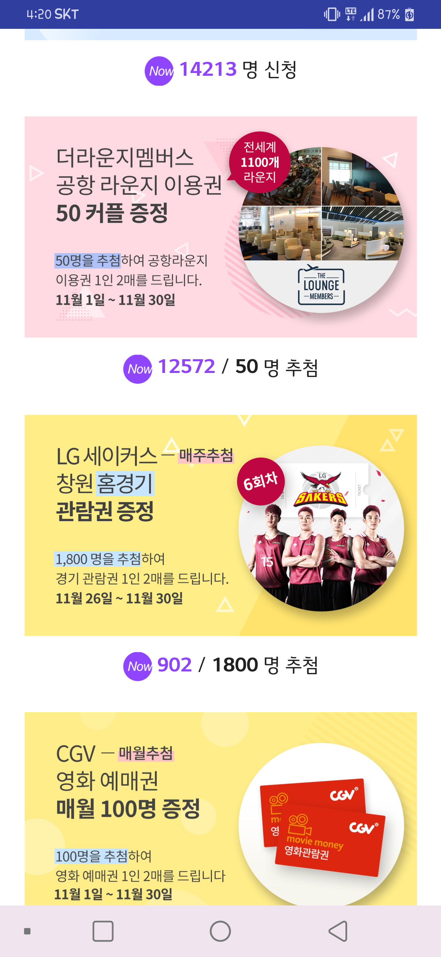 창원 엘지 농구경기 신청해보세요.. 매주 신청되는데