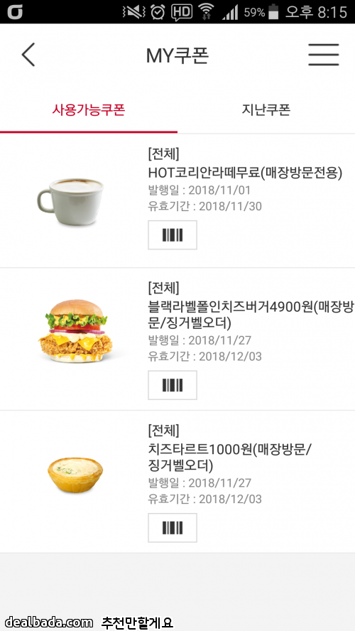아랫글보고 혹시 필요허신분 계신가해서 올려봐요. 쪽지로 보내드릴게요. Ps. 사이렌게시판에 비공개님이 올려주신 삼성카드 쇼핑몰 커피빈 아메리카노 미니 30개입 2,500원 아직 살아있네요.