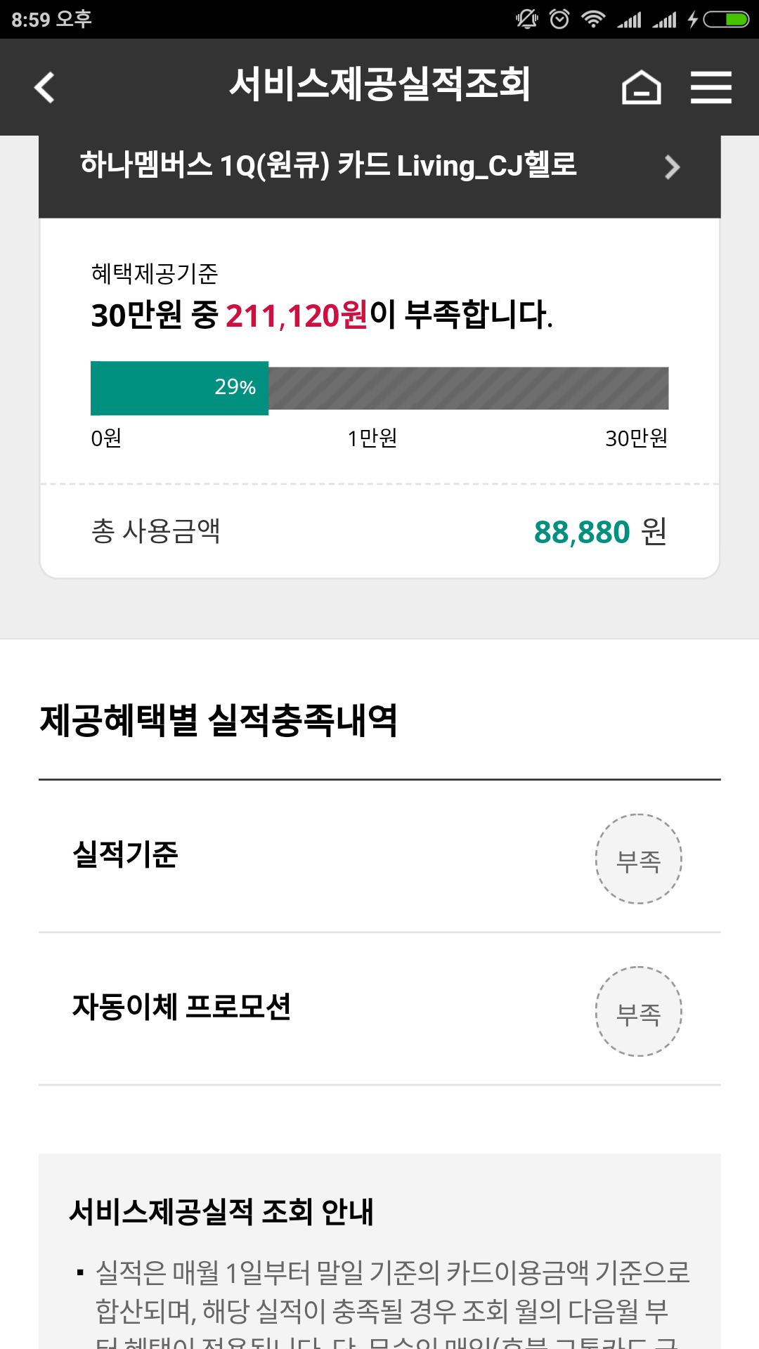 저번달8만원결제후 이번달에취소해서실적이 -8만원부터시작해서 8만8천원을썼는데도 자동이체실적이 초록색으로 안바뀝니다 왜그럴까요? ㅜㅋㅋ