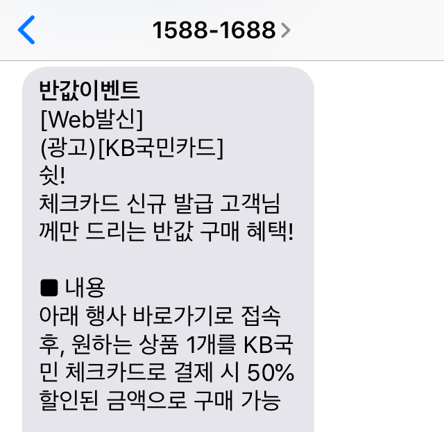 얼마전에 체크카드 만료되서 다시 발급받았는데 이벤트 문자가 왔습니다.