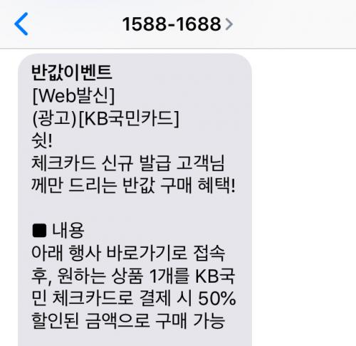 저는 그냥 필요해서 발급했는데 문자로 보내줬어요. 신용카드 발급 받으면 KB자체로 보내주는 것 같더라구요. | ||