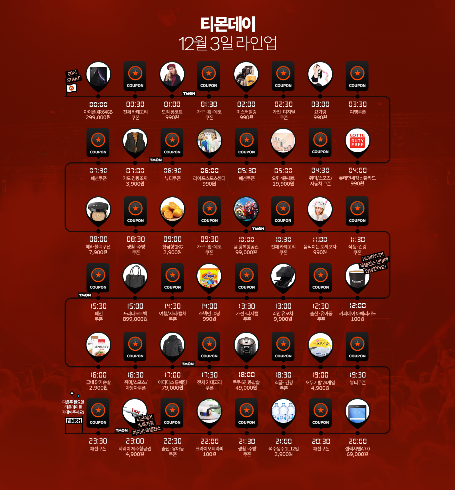 12시 : 커피베이 아메리카노(50,000매) - 100원